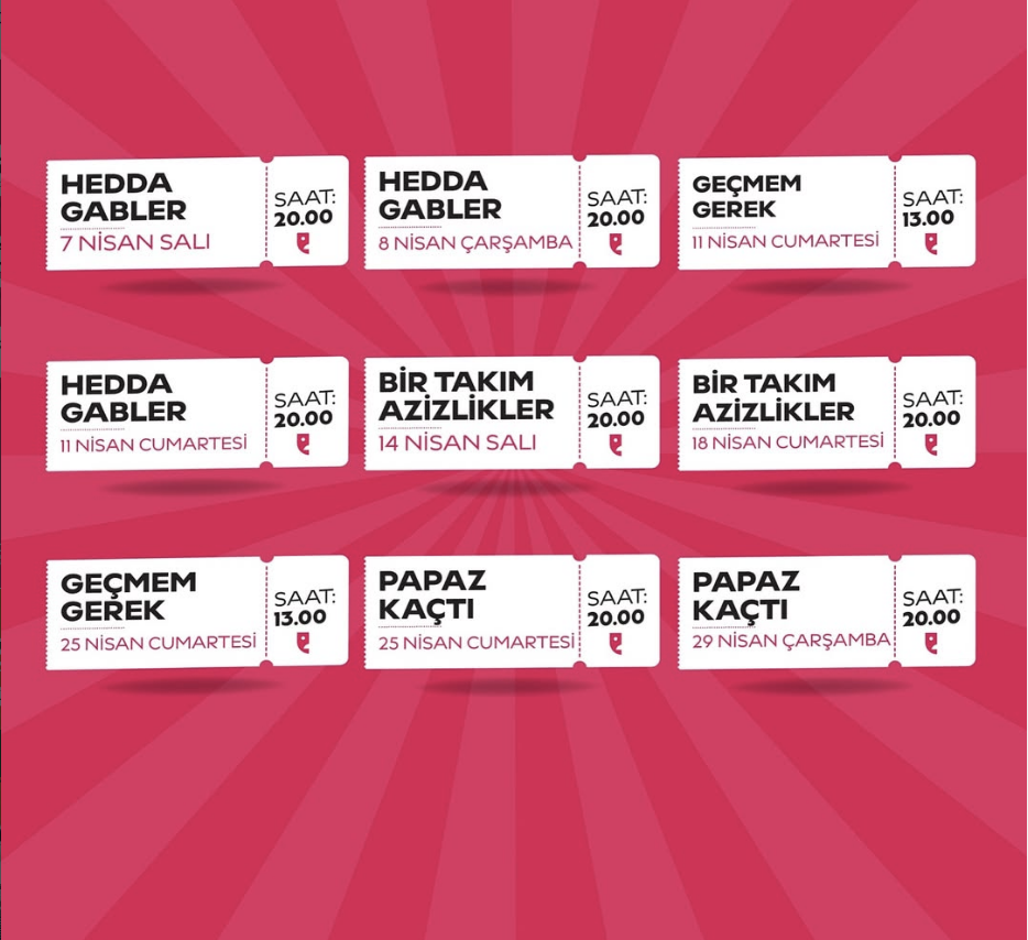 Nisan ayı programında öne çıkan oyunlar arasında dünya tiyatrosunun önemli eserlerinden “Hedda Gabler”, izleyiciyi düşündüren “Geçmem Gerek”, eğlenceli yapısıyla dikkat çeken “Bir Takım Azizlikler” ve sahne performansıyla merak uyandıran “Papaz Kaçtı” yer alıyor.