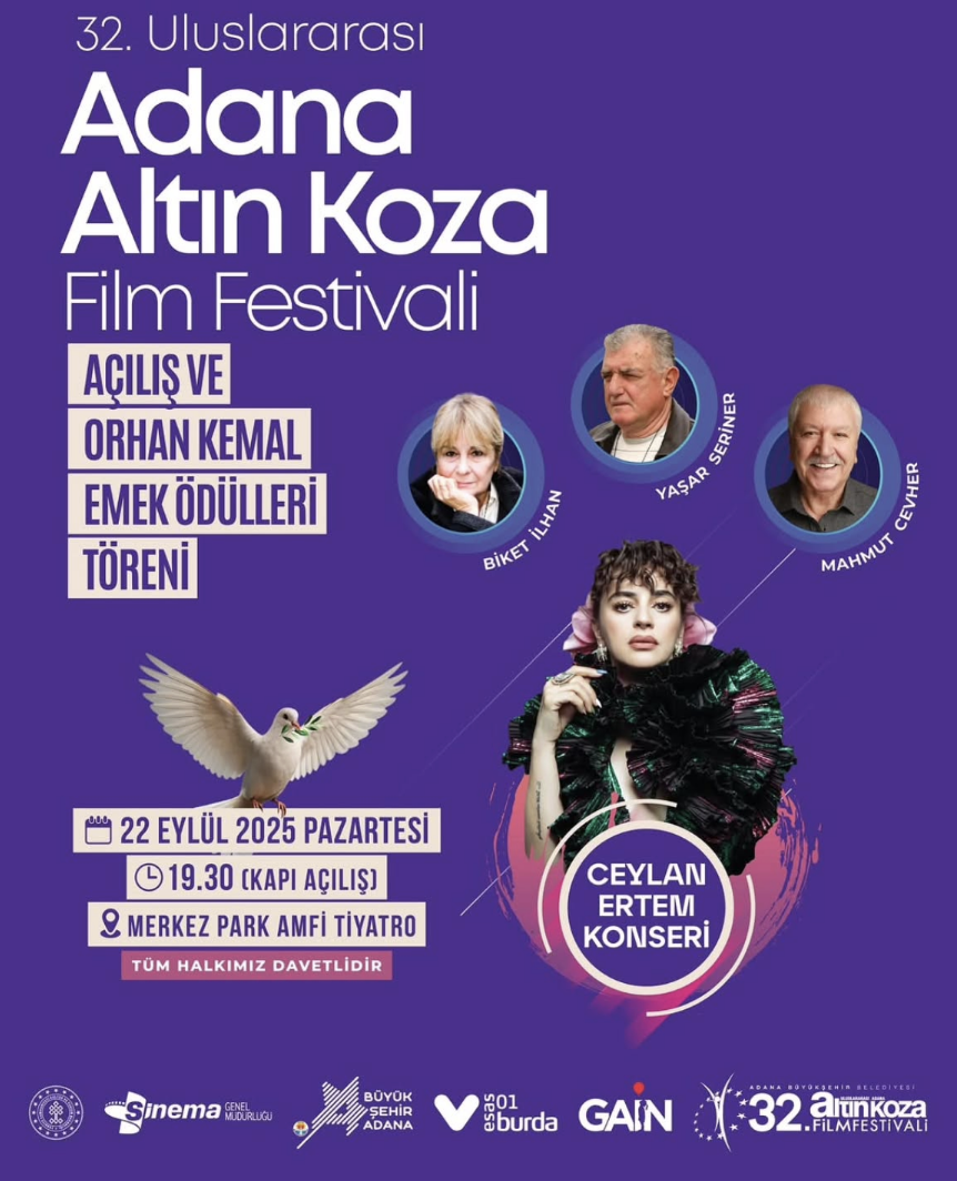 22-28 Eylül tarihlerinde gerçekleştireceğimiz 32. Uluslararası Adana Altın Koza Film Festivali Açılış & Orhan Kemal Emek Ödülleri Töreni,