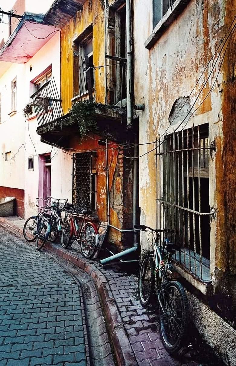 Penceresinin önüne saksılar sıralanmış pembe bir evin önünde duruyorum.
