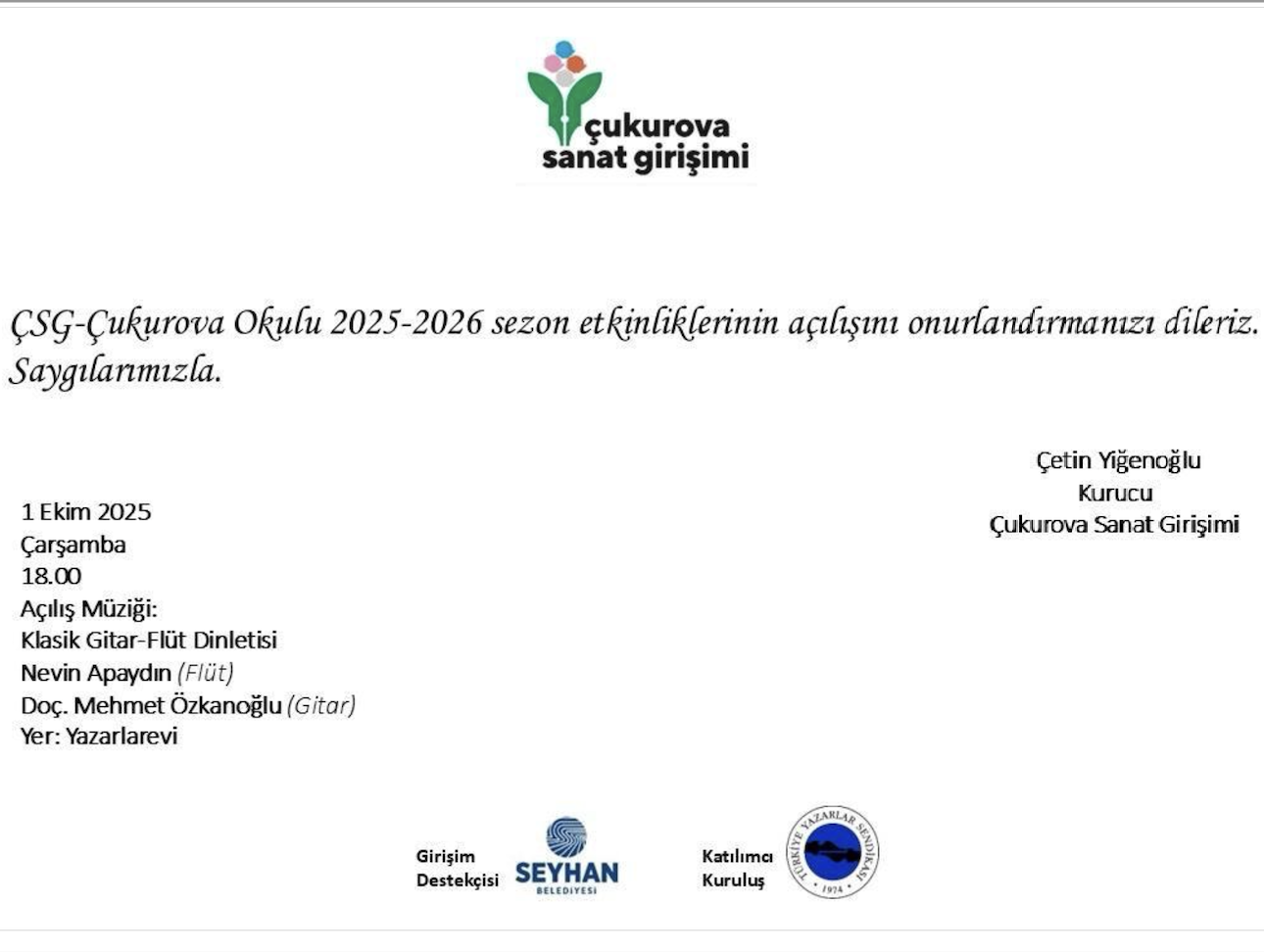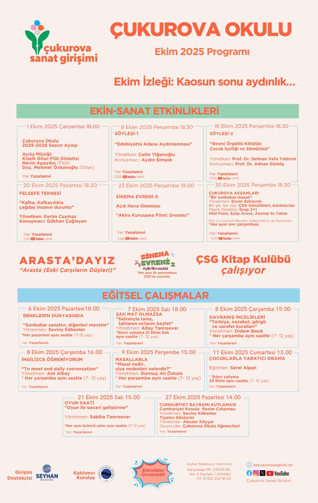 Çukurova Okulu Ekim 2025 programı