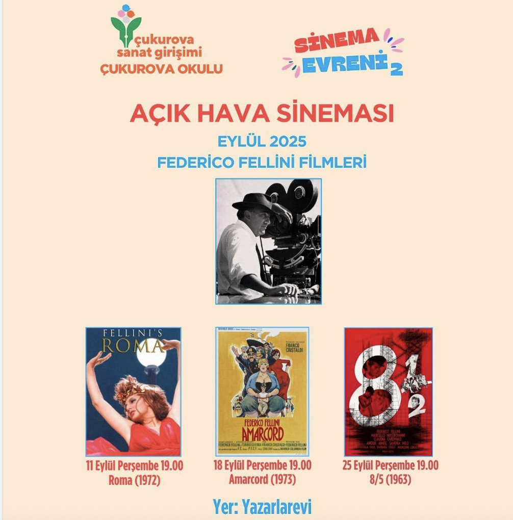 Çukurova Sanat Girişimi Açık hava sineması eylül ayı programı10 Eylül 2025SİNEMATİYATRO&SİNEMA https://www.facebook.com/photo?fbid=10162886184874194&set=pcb.10162886185209194&locale=tr_TR