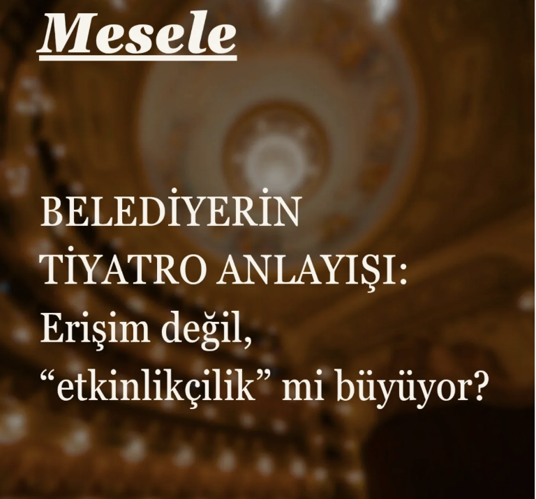 Belediyelerin ücretsiz ya da çok düşük ücretli tiyatro etkinlikleri, kültür politikası olmayan yerlerde hızla “etkinlikçilik”e ve geçici göz boyamaya dönüşebiliyor. Programlar çoğu zaman zaten popüler olan oyunları taşıyıp kalabalık fotoğrafı üretiyor; yerel ekosistemi büyüten sürdürülebilir bir çerçeve kurmuyor. Davetli doldurma, kapasite aşımı ve zayıf organizasyon disiplini salonu geriyor; seyir adabı bilinmediğinde tartışma ve kavga ihtimali artıyor. Daha kötüsü, olumsuzlukların “idare edilir” diye geçiştirilmesi. Ücretsizliğin tek vaade dönüşmesi, emeğin değerini aşındırıyor. Çıkış; şeffaf rezervasyon, kapasiteye uyum, eğitimli görevliler ve denetlenebilir, sürekli bir kültür politikası.