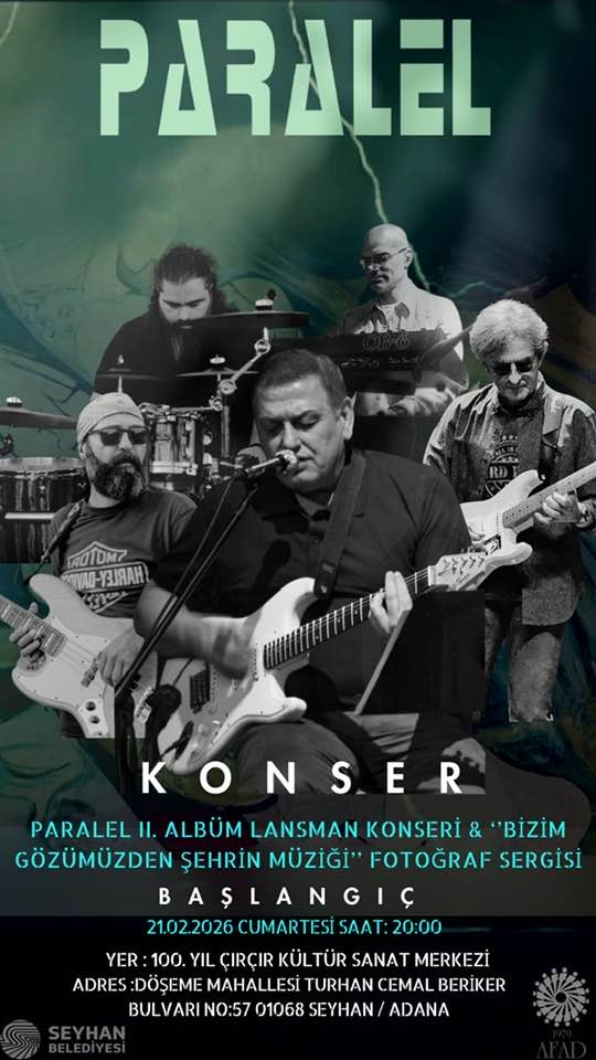 Paralel Konser, 21 Şubat Cumartesi21 Şubat 2026MÜZİK GRUP PARALEL KONSERİ ve ŞEHRİN MÜZİĞİ FOTOĞRAF SERGİSİ, 21 Şubat 2026 Çırçır Sanat Galerisi -Adana.